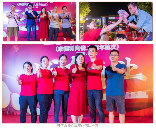而也借本次开业活动,厂家和门店一起放出优惠,希望大家可以在金九银十期这一家装旺季,享受到专属的活动优惠。晚宴中,作为开平来德利旗舰店的老板娘周总更是大方拿出现金奖励,与广大业主朋友互动,对各位多年来的支持表示感谢。