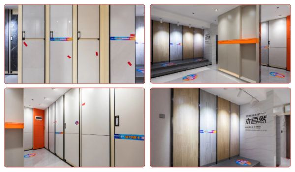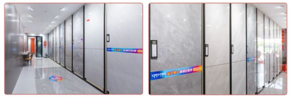 空间分为多种的展示区域,当下流行的大规格产品900X1800MM、750X1500MM等产品,以多样化的产品工艺进行合并展示,品牌产品凭借防滑、防污、耐磨等系统化的物理性能,为消费者选择更加适合自身家装需求的产品,提供丰富的选择空间。