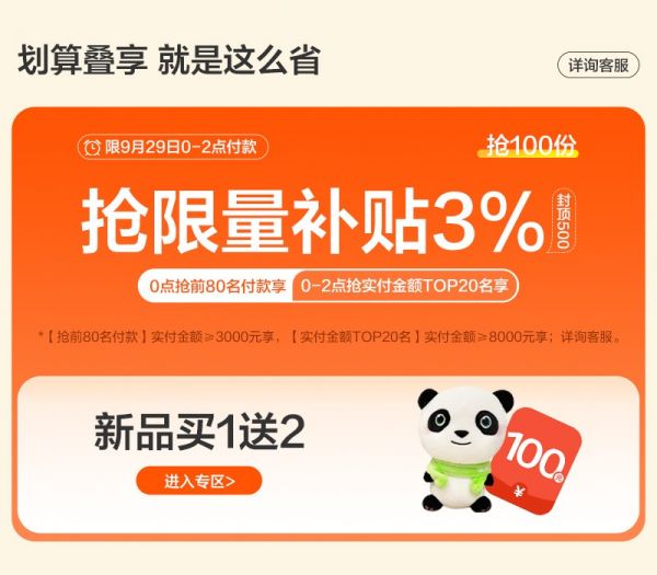 9月29日00:00-24:00点,全友京东官方旗舰店将开启“抢买3件免1千”的优惠活动,届时全场家具均享受抢买3件免1千超值福利;9月29日00:00-2:00付款,还可抢3%限量补贴,最高可省500元,消费者可以用更优惠的价格将心仪的家具带回家,购物之旅省上加省。