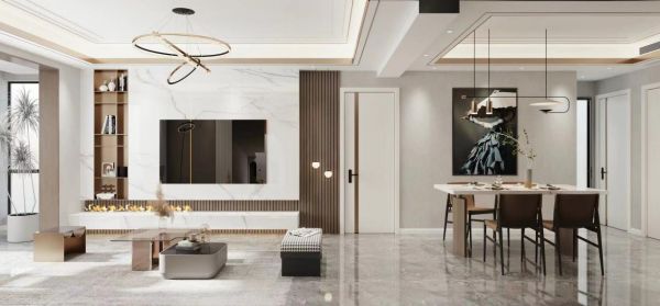 沙发背景墙有女儿房的卧室门让空间比较局促,现在我们在设计上,把女儿房做隐形门让整体空间在视觉上有更大的空间即视感。