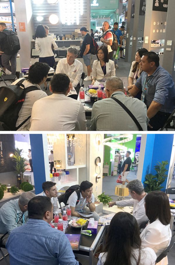 展会期间,华艺团队以饱满的工作状态接待海外客商,并为他们展示了现拥有的较为成熟的工程配套产品和全场景整体照明解决方案,让客户可以更好地了解我们的产品特色和方案优势。部分客户现场签订了意向订单,更有不少客户会后积极前往我司参观生产车间和品牌展厅,进一步落实合作事宜。