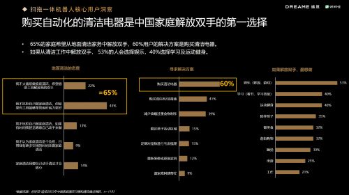 正是依靠着一次次的技术更新升级,扫拖一体机器人解决了家庭家务地面清洁任务频率高、耗时高的负担,购买自动化清洁电器,也成为不少家庭解决双手的第一选择。数据显示,65%的家庭希望从地面清洁这项任务之中解放双手,将这部分时间更好地投入到娱乐、学习和运动健身当中去。