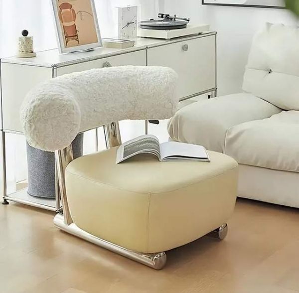椭圆形的茶几、球形脚凳、雕塑感极强的沙发等是奶油风家居常见的首选。