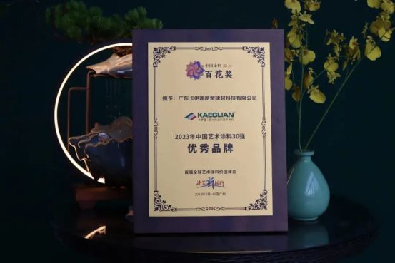 涂料行业媒体《涂装新视野》推出了“2023年百花奖中国艺术涂料卓越品牌”榜单,卡伊莲艺术涂料凭借自身优势在最终评选中荣获百花奖2023年“中国艺术涂料30强优秀品牌”奖项。