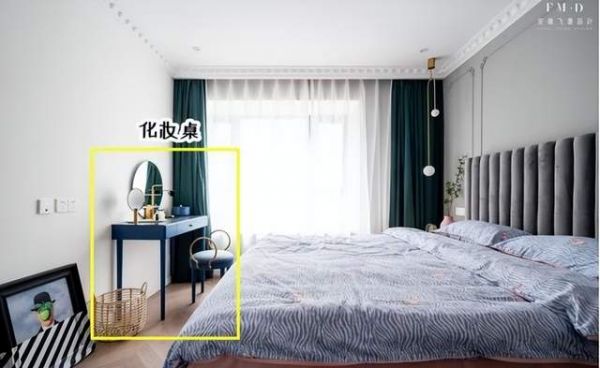 如果家里没有化妆间,可以将化妆桌挪到床尾,最好偏离正对着的方向,光线好也不至于半夜起身,被镜子吓到。如果家中没有独立书房,且自身有在家工作加班、看书写字的需求,可以在床尾摆上一张书桌,这样平时看书、工作加班,都能拥有一个安静舒适的小角落。