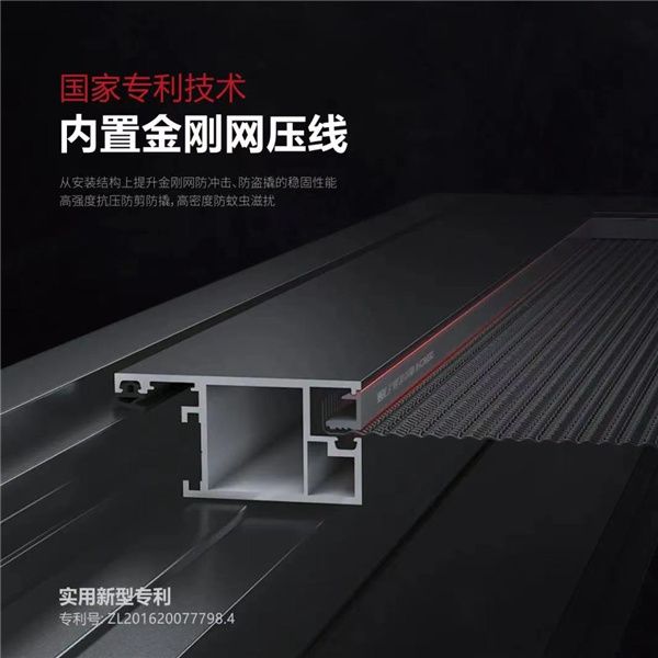“内置金刚网压线”则是德技优品门窗实用型发明专利,采用内槽口设计,解决了压线面在室外面而导致的易撬问题,提升美观度的同时为用户提供了更加舒适和安心的使用体验。