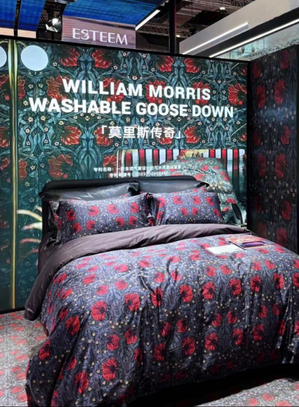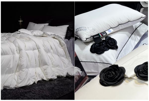 不止于内芯的纯净,宜庭为解决日常生活中“不小心”弄脏的烦恼,创新研发拒污面料,恒塑鹅绒寝具的无暇品质。现场展出的英伦玫瑰系列,以纯白抒写纯粹,除了填充鹅绒的舒适触感,面料更采用防污拒污织艺,无需小心翼翼,一抹即净,全身心享受放松的居家时刻。