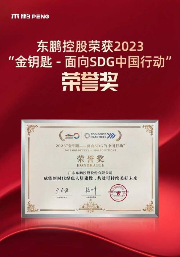 11月17日,由《可持续发展经济导刊》主办的2023“金钥匙——面向SDG的中国行动”发布典礼在北京大学百周年纪念讲堂隆重举行。作为中国建陶行业领军企业,东鹏控股以“赋能新时代绿色人居建设,共赴可持续美好未来”行动荣获“金钥匙·荣誉奖”。