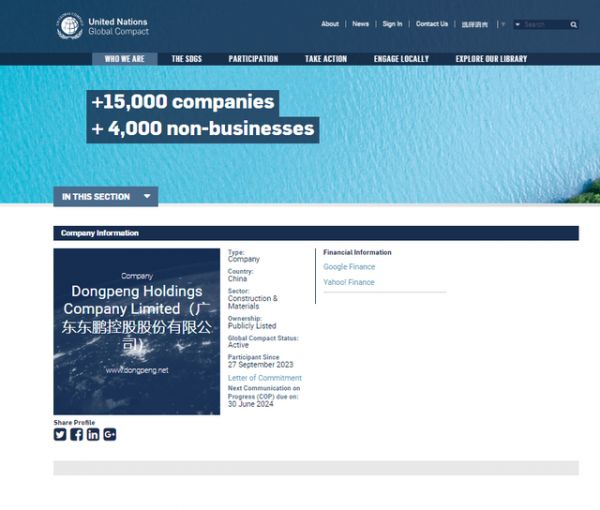 2023年,东鹏凭借在绿色发展领域的积极探索与创新,正式加入联合国全球契约组织,为实现联合国可持续发展目标贡献力量。截止目前,东鹏已获“第一批绿色工厂示范单位”“2023年全国绿色建材下乡活动(广东站)推广企业”“中国ESG最佳实践企业奖”“中国ESG上市公司大湾区先锋50”等多项权威认证和绿色荣誉。