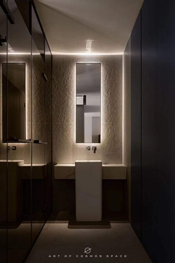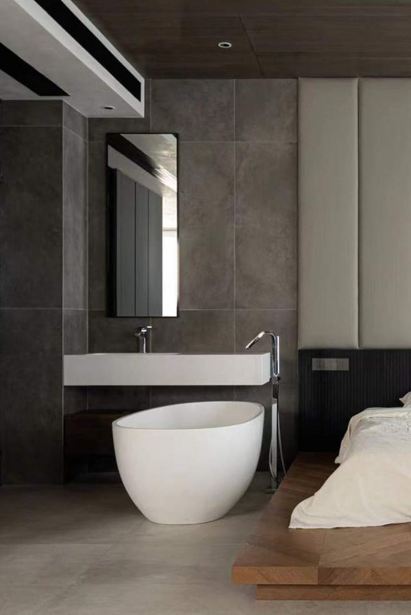 深色一体盆台面,天然拉米娜岩板浴室柜