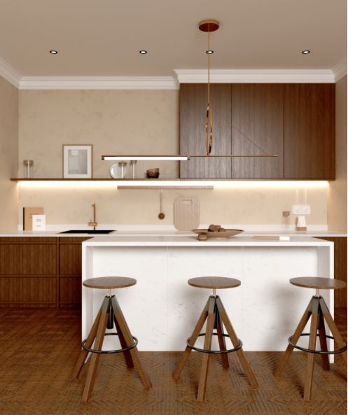 复古法式风格,也可以理解为现代法式。继承了传统法式的元素特征和文化,同时也满足了当下人们“少即是多”极简主义的心态和追求。法萨石融合了复古法式风格,为厨房带来了新的灵感,重新定义了餐厨空间。