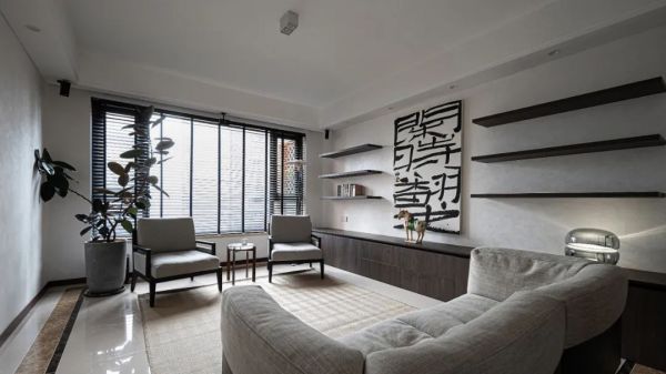 该案的业主希望打造一个安静、舒适、适合阅读的空间,蔡星宇着重突出“儒雅”“宁静”的空间气质,通过大量柔和自然质朴的材质来烘托空间气质。