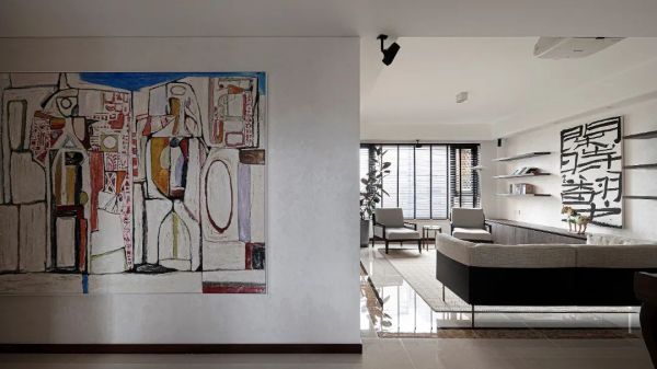 整个空间的优雅气质由百合色的艺术涂料来衬托