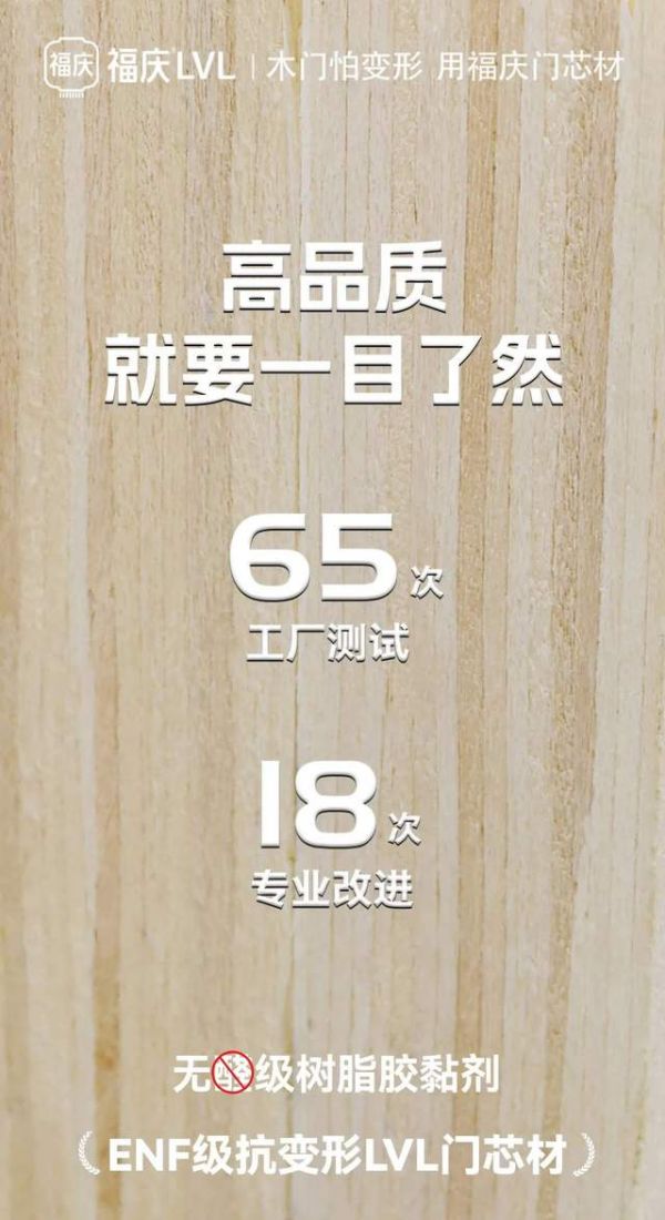 福庆LVL依托技术和工艺突破,推动行业环保水平升级,创新ENF级抗变形LVL门芯材,在本次大会上荣获“2023门墙柜产业-降本增效推动者”,引领绿色建材风向标!