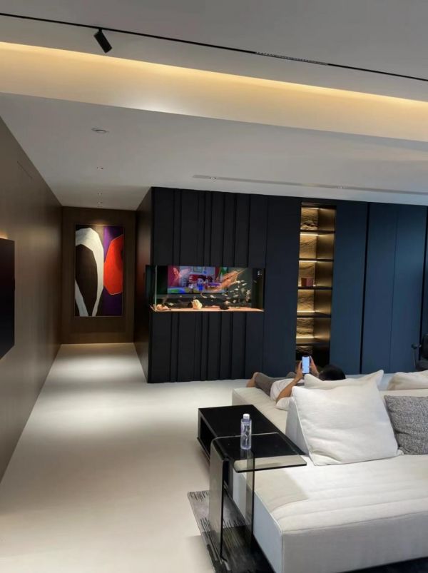 不久前,他还为一对喜欢养鱼的海归年轻夫妇设计了私宅空间,利用柜子与鱼缸的设计结合,做一个观感上的“呼应”;