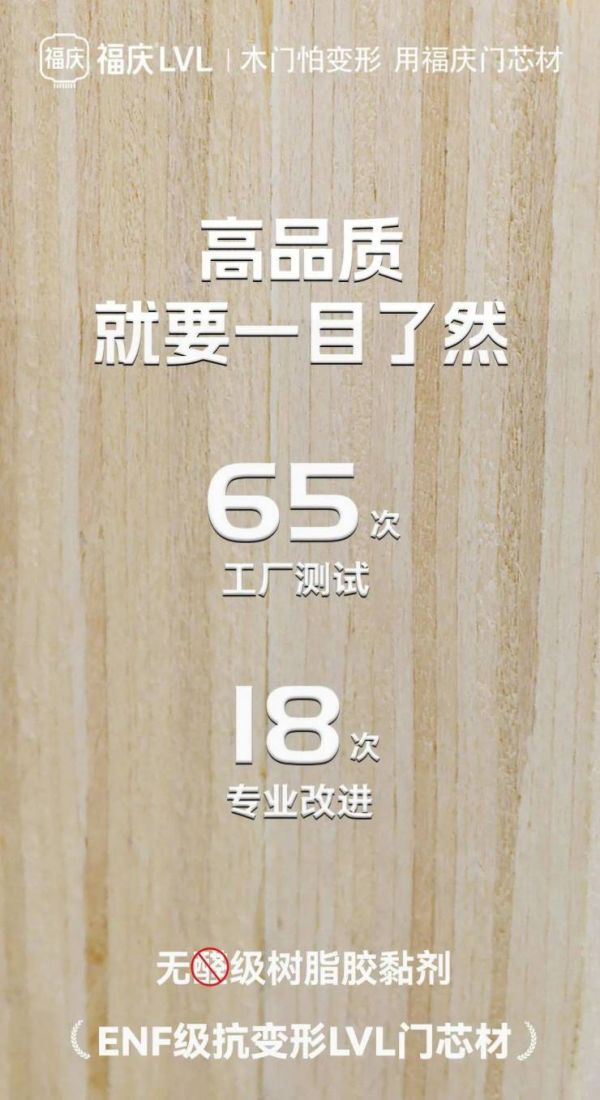 福庆LVL依托技术和工艺突破,推动行业环保水平升级,创新ENF级抗变形LVL门芯材,在本次大会上荣获“2023门墙柜产业-降本增效推动者”,引领绿色建材风向标!