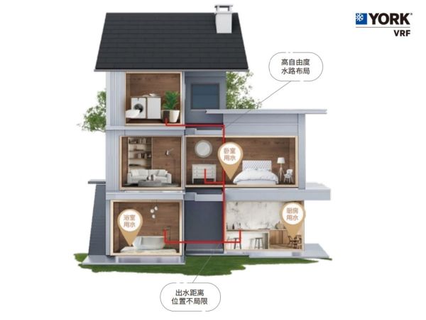 水压稳定是多点流畅出水的前提,约克VRF热水中央空调采用承压式水路设计,根据每个家庭的户型定制水路布局方案,实现全屋多点多路的立体供水。复式住宅、大平层等户型可配备室外大主机与大容量水箱,提升热水加热效率和储水量,即使多个房间同时用水也能保持稳定水压,让每个家庭成员都能享受瀑布般的劲爽沐浴体验。