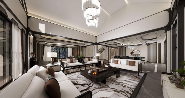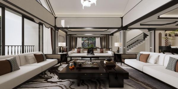 整个别墅的风格定义为“新中式混搭南洋风”,符合业主对于现代文化和海派文化交融的追求,再有中式元素的加持,整个氛围稳重且具有“书香气”,业主看到最终的空间呈现,非常满意当时的设计效果,直呼这就是他们梦寐以求的“舒适家”。