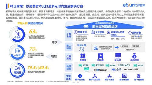 紧跟年轻人对家居消费的新需求,林氏家居早已从“单一的成品家具销售商”扩展到“一站式家居生活解决方案提供商”。如何实现一站式,林氏家居的差异化体现在“全品类、全风格、全场景”的实力优势上。比如,为实现年轻人家居消费的个性化需求,林氏家居实现每年在售产品SKU数10000+;面对年轻人家居消费潮流化的需求,林氏家居则基于大数据对用户需求与时尚趋势进行洞察,再通过敏捷型供应链,实现每月200+SKU的上新能力;此外,林氏家居除主品牌外,还布局林氏整家定制、LINSY KiDS、林氏睡眠等多个细分赛道满足年轻人家居消费的一站式需求。如今,林氏家居覆盖的品类从单一的成品家具延展到“橱衣门墙定制X成品家具X家居软装”的大家居业态。