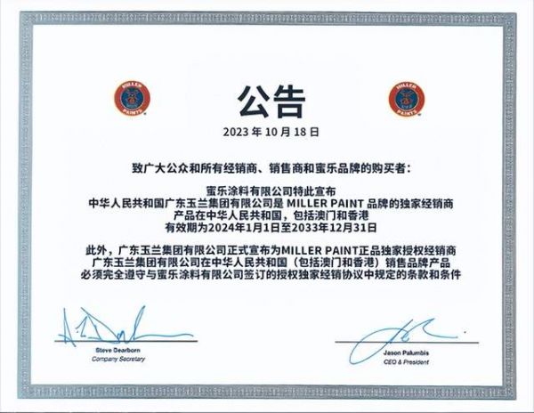 正是基于这一市场趋势,当中国涂料市场尚处于量变到质变的进阶阶段,美国Miller蜜乐高端涂料瞄准时机,将2023年作为开局破势之年,并携手玉兰集团吹响了加速进驻中国高端涂装市场的号角,可谓恰逢其时。
