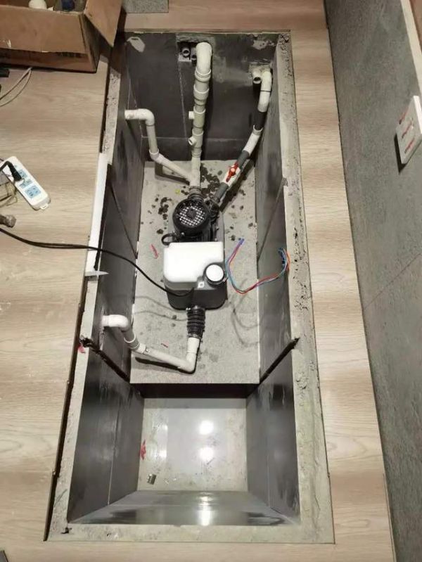 然鹅,想同时拥有品茗区和卫生间,最大的挑战是废水&污水排放。新店铺的选址距离主排污管较远,而且无法依靠重力排污。