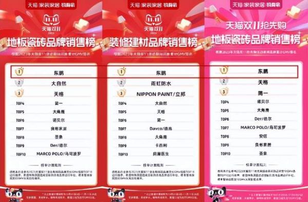 △ 2023年双11期间,东鹏瓷砖通过线上线下全渠道开展促销活动,最终以销售额蝉联天猫三连冠的亮眼成绩为双11大促圆满收官,其品牌力、产品力再次占据市场心智。