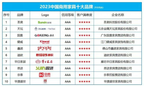 近期,由招投标供应链品牌推介平台举办的“2023中国办公及商用家具评价推介”活动圆满结束,经过严格甄选与激烈的竞争角逐,“2023中国商用家具十大品牌”在京隆重揭晓。圣奥、天坛、国景、健威、鑫诺、迪欧、华日、思进、京泰、华澳盛世等品牌荣登榜单。此榜单充分考量了企业的综合实力、市场占有率、用户口碑等因素,上榜品牌凭借其卓越的品质、创新的设计和专业的服务,赢得了市场和用户的广泛认可。本活动旨在嘉奖业内优秀商用家具品牌企业,提升商用家具行业的整体形象和品牌综合竞争力,扩大优秀品牌的市场知名度和影响力,进一步推动我国商用家具品牌高质量发展。