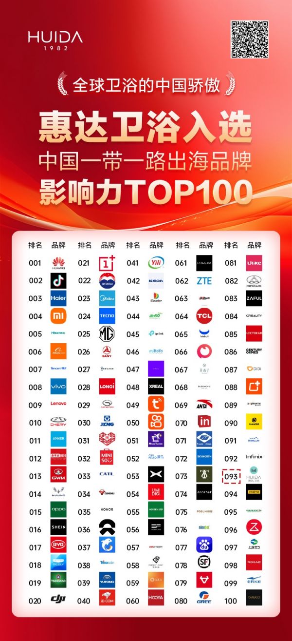 影响力品牌是对惠达卫浴在市场中所作贡献的肯定。多年来,惠达卫浴立足中国,以国内大循环为主,形成国内国际双循环的新发展格局。在外循环方面,以“全球卫浴,中国惠达”愿景为指引,布局全球,2023年10月,惠达卫浴还成功入选“中国一带一路出海品牌影响力TOP100”,展示了惠达卫浴在国际市场中的地位和影响力。同时,惠达卫浴致力于传递“智能、整体、生态、数字”的理念给全球用户;在内循环方面,深挖内需潜力,提供适销对路产品,2023年以“中国智能马桶,我选惠达”为营销重心,推出007系列全智能马桶,掀起中国市场的智能马桶普及风暴,先后受到国家部委关注及省部级领导点赞,产品和服务深受消费者喜爱。此次荣获影响力品牌,是对其在市场上所做贡献的肯定,也是惠达卫浴继续发挥品牌优势,提升产品品质,为我国卫浴行业发展做出更大贡献的新起点。