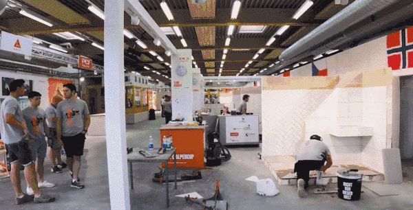 大板团队赛的实操考核将于12月16日上午进行,中外15支队伍(3人/队)需在2.5小时内,完成4块2400mm×1200mm超大板的上墙铺贴操作,由4组专业评审对其作品的平整度、上口平直、粘结层厚度等11个项目进行评分,并根据综合得分评选出中国赛区冠亚季军团队,最佳满浆奖、极致切割奖;其中,获得冠军的本土团队将与海外团队共同角逐国际赛区的冠亚季军、最佳满浆奖。