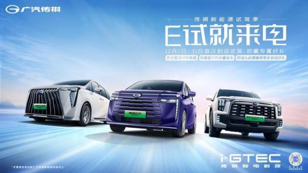 12月,广汽传祺将开展“新能源试驾季-E试就来电”试驾活动,不仅能让广大用户朋友感受最强三电带来的驾驶乐趣,还有丰富的礼品等待领取!到店首次试驾传祺新能源E9、ES9和E8的客户,可享试驾豪礼。