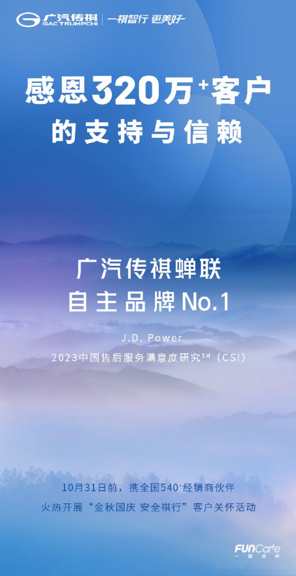 完善的服务体系也得到了消费者的认可,在前不久公布的2023年J.D.POWER中国售后服务满意度调查(CSI)中,广汽传祺蝉联自主品牌第一名;此前2023年J.D.POWER中国销售服务满意度研究(SSI)中,广汽传祺也同样位居自主品牌销售服务满意度第一,消费者的肯定也将持续化作传祺前进的内在动力。