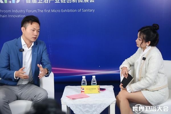 鹰卫浴市场部总监龙治宇接受媒体采访