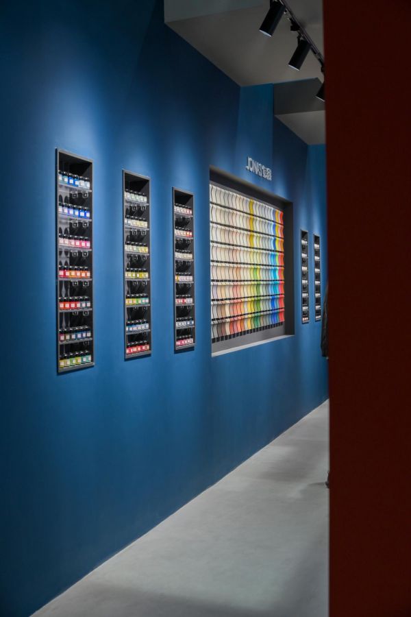 在展厅设计上,鲸彩漆涵盖了源自欧洲的涂装行业丰富自有色彩体系,色彩样板与小罐漆由浅到深分布于墙面,色彩覆盖色域广。可为用户量身定制空间,让更多人了解到色彩搭配对于提升空间审美的作用力以及产品优异的性能。出色的色彩表现力与极简时尚的空间设计,吸引了观展者纷纷驻足打卡,参与现场互动。