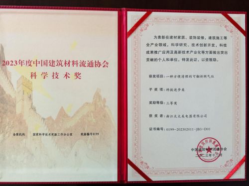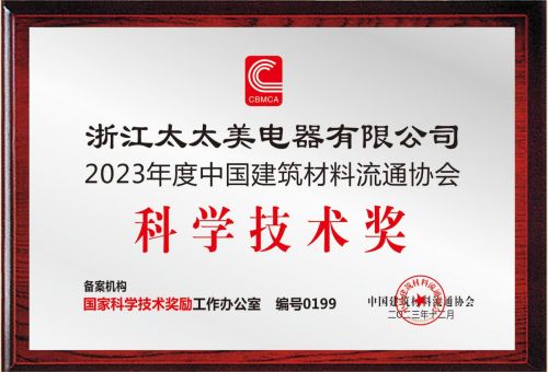 技术引领行业!太太美荣获中国建筑材料流通协会“科学技术奖”
