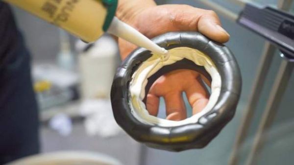 车继成解释:“安装马桶时,法兰圈(密封圈)里面一定要打胶,不然过几年可能就会出现漏水和反臭。”