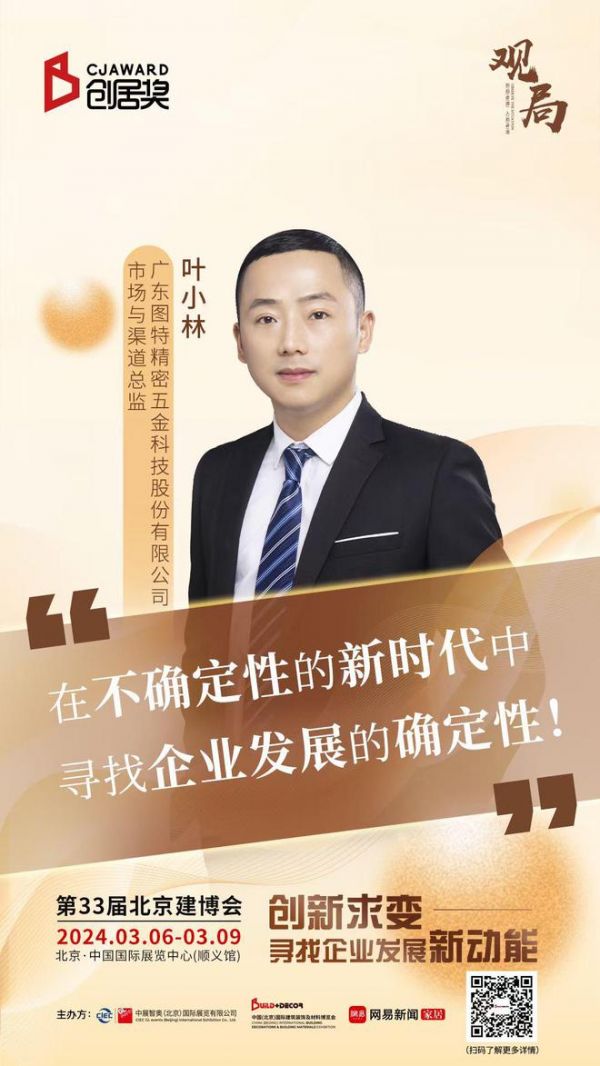 广东图特精密五金科技股份有限公司市场与渠道总监叶小林表示, 2023年,图特通过品类拓展、C端布局等一系列调整和优化,借助研发中心的赋能和数字化工厂的提升,实现了两位数以上的增长。图特经过十几年的发展,逐渐从基础五金向全屋五金拓展,在行业内小有名气。但面对存量市场,图特在C端还有较大空间。对此,叶小林表示,图特针对家居应用场景进行产品调整和创新,如厨房和衣帽间等,直击消费者需求;此外依托数字化工厂和高效交付优势,也提高了效率和竞争力。叶小林认为要在当前的市场环境中突围,品牌需要回归到组织运营效率的提升。通过产品创新和智能制造布局,图特在用户需求解决和B端交付上具有竞争优势。