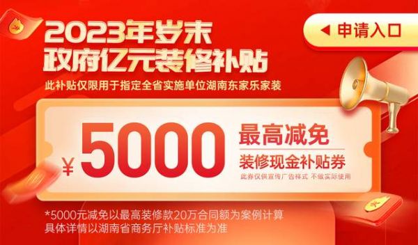 东家乐家装积极响应政府号召,促进家居消费,成为本次装修补贴活动的实施单位之一,全省30家直营门店均为本次活动的实施单位,消费者在近期装修最高可领取装修现金补贴5000元!(具体细则以湖南商务厅政策为准)另外更有长沙广电嘉丽购、湖南爱晚频道媒体感恩送装修现金补贴,东家乐家装也为本次媒体补贴活动的实施单位,抢到即赚到,名额不多先到先得!(具体详细以媒体平台详情为准,详情咨询客服)