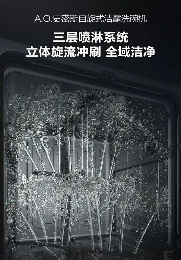 A.O.史密斯创新研发出了突破性的专利*自旋式洁霸"黑科技",能够在清洗过程中将"自旋专区"的碗进行自动旋转,直至每个角落都直面强劲水流,瓦解顽固残渍,真正做到360度冲刷无死角。