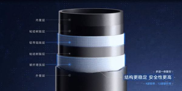 针对普通金属管道存在腐蚀、结垢、施工效率低和使用寿命短的问题,中国联塑发挥大企担当,以黑科技为能源开采及传输的全过程提供了硬保障。联塑在洞悉现有痛点的基础上,研究开发的油气用RTP玻纤复合管,以聚乙烯基体树脂为内外层,以玻纤复合带连续螺旋缠绕熔接为增强层。这便意味着,联塑油气用RTP玻纤复合管除了核心层坚固的塑料,中间还有一层强化材料,最外层还有保护壳。因此,联塑RTP玻纤复合管既能承受较高的工作压力,又保持了塑料管道质轻、耐腐蚀及柔韧的优点。