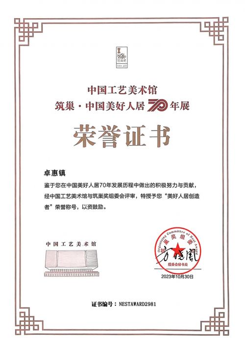 2023年10月30日,中国工艺美术馆 中国非物质文化遗产馆、广州美术学院建筑艺术设计学院、筑巢奖组委会联合主办的“筑巢·中国美好人居70年展”暨“第十一届筑巢奖颁奖盛典”在京拉开帷幕。