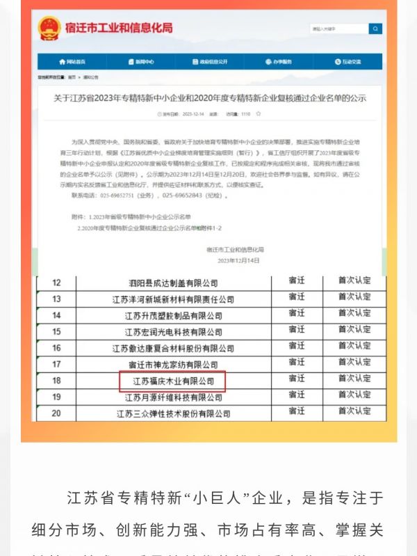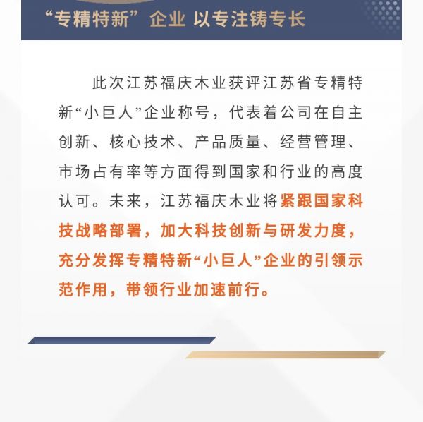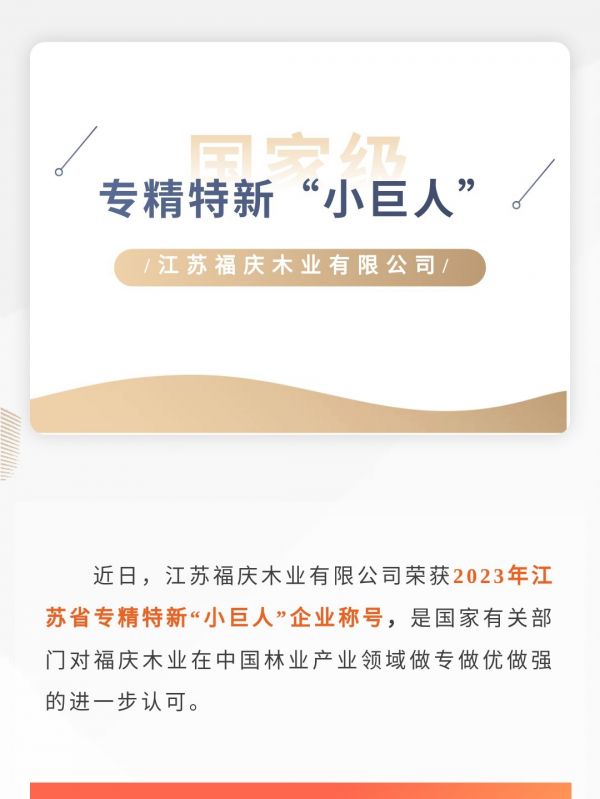 载誉逐程|福庆木业荣获2023年江苏省专精特新“小巨人”企业称号