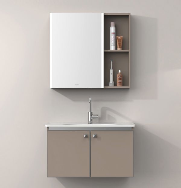 HFL0705星尚系列浴室柜,简约时尚的设计,线条流畅,柜体采用枪灰色铝合金封边,防水防潮,充满现代感。同时,内部空间布局合理,搭配女士专属美妆收纳模块,各种洗漱用品、化妆品、首饰等便捷收纳,让您的卫生间更加整洁有序。无触式感应美妆灯,手挥感应即可控制灯光开启,无需接触镜面,减少挂污,更具备还原日光效果,补光美妆,柔和不刺眼。