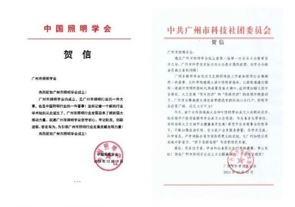 本次大会还收到了来自中国照明学会、广州市科学技术协会发来的贺信。