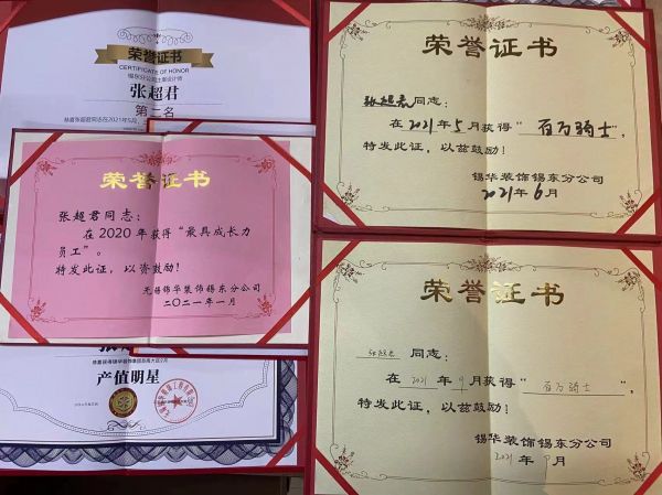 2021年5月获得锦华装饰集团 百万骑士 称号