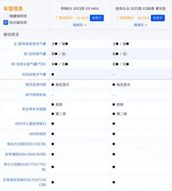 论安全系数,整体到位,E9考虑更全面;论动力续航,结构不同,E9更高效节能;论豪华舒适,E9给的更多,照顾更周到。