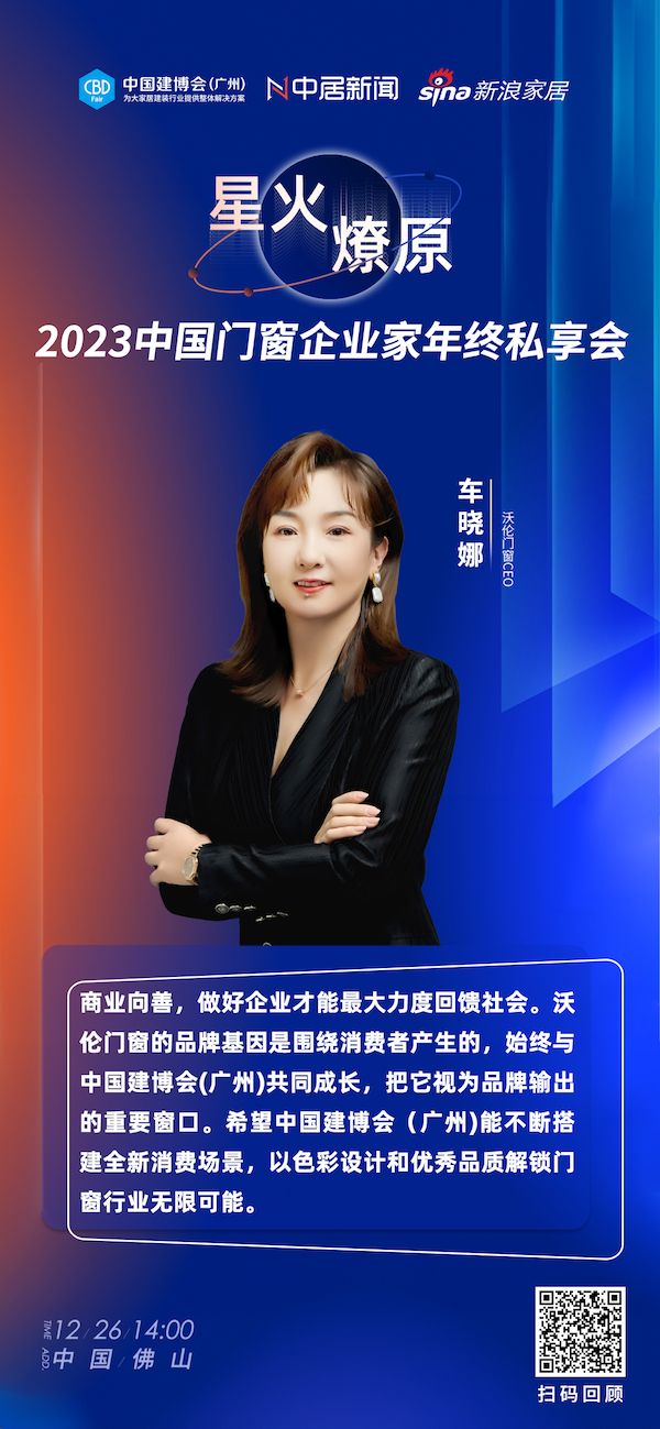 12月26日,中国建博会 (广州) 、中居新闻、新浪家居共同主办的“「星」火燎原2023 中国门窗企业家年终私享会”于佛山顺利举行。
