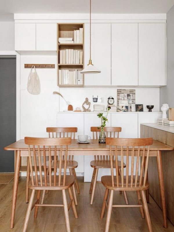 对于玄关部分空间较小的家庭来说,可以选择玄关柜与餐边柜一体设计。这种设计既节省空间,又能满足玄关和餐厅的收纳需求,使空间得到更有效的利用。