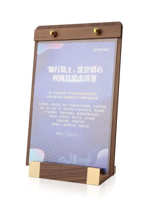 致力“成为植根中国的全球卫浴品牌”,我们不忘初心,坚守品质和勇于创新。华艺卫浴坚守环保、低碳等发展使命;为世界构建可持续发展贡献中国力量。华艺卫浴凭借着强大的供应链体系及优质服务能力,荣登“2022年度 A级供应商(集团集采类)”榜单之上,华艺代表上台,现场接受表彰。