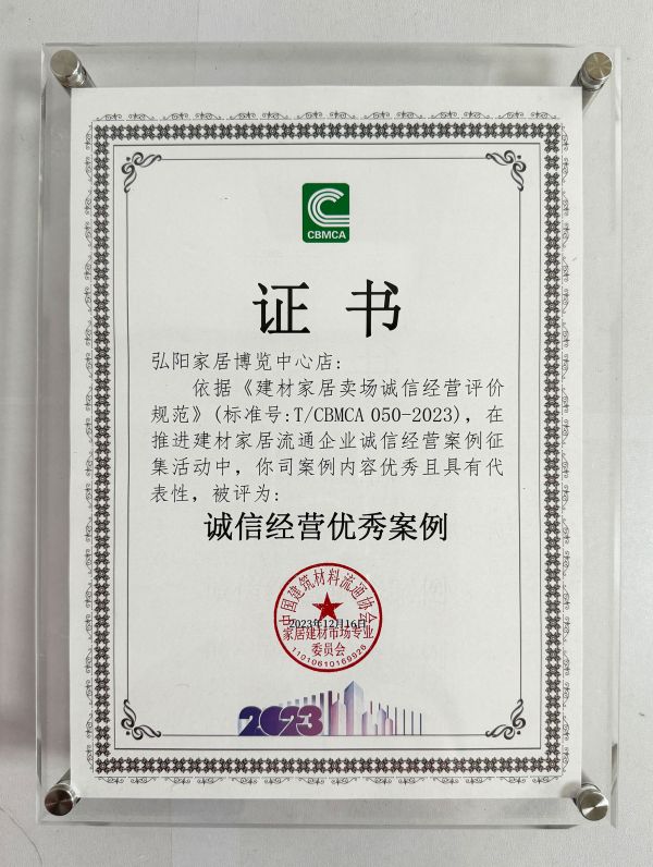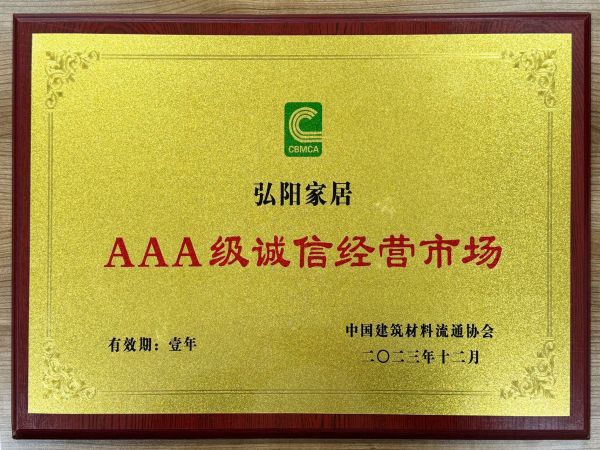 弘阳家居 荣获《诚信经营AAA市场评价》