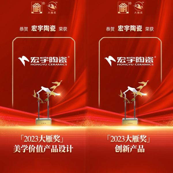 再添荣誉!宏宇陶瓷荣获【2023大雁奖-创新产品和美学价值产品设计】双项殊荣